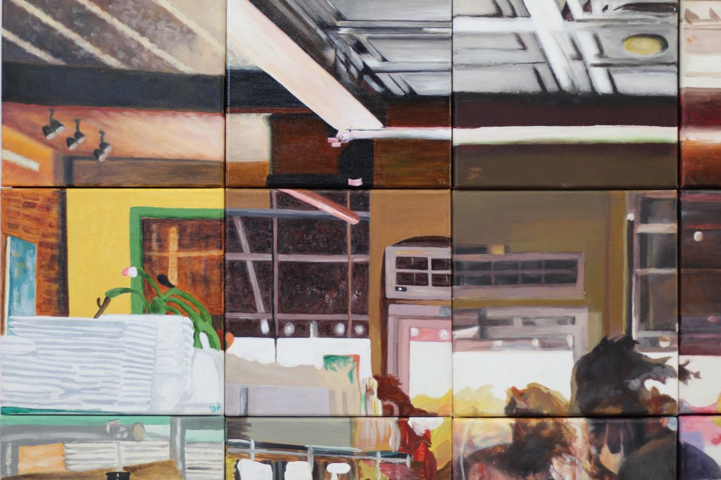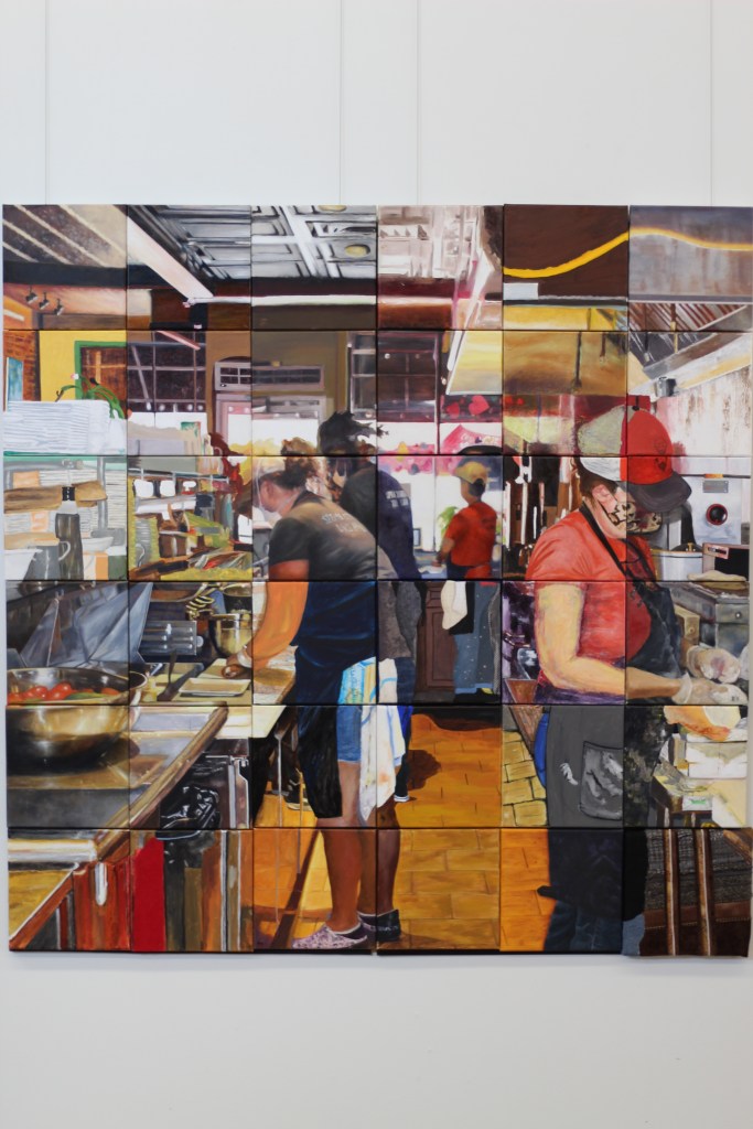 The original photograph is a view of Falafel Shack’s (9 N. Main St.) kitchen, and it was chosen because it is “such a welcoming presence in the community” explained Finucane.