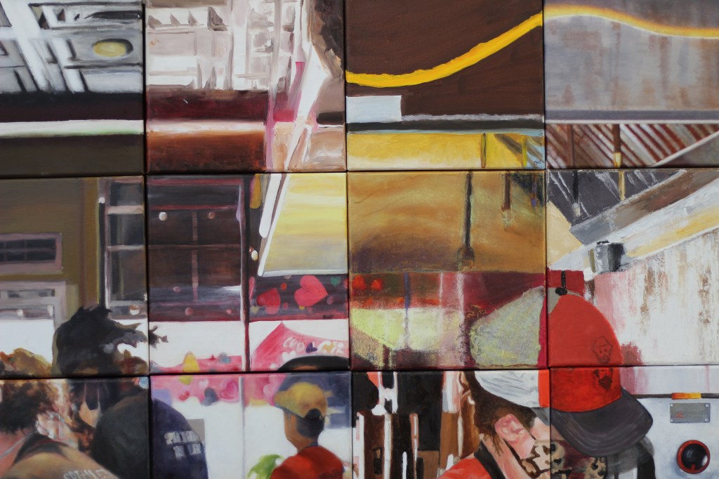 “Women@Work” incorporates 36 different styles – some bold, some atmospheric – and a variety of media including oil, acrylic, collage and marker. It should be seen in person because pictures on social media will likely fail to convey the variations in texture.