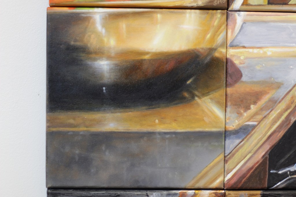 “I had part of an apron and a derriere and a part of a table,” said Davis of her contribution, which used acrylic and marker. “It was a little easier for me to figure to figure out what the picture was based on the pieces that I had.”