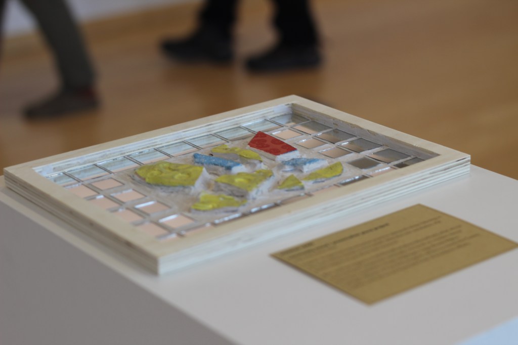 Legg contributed two paintings and a mosaic to the show. All three pieces explored improvisation as a form of dialogue with the materials themselves.
