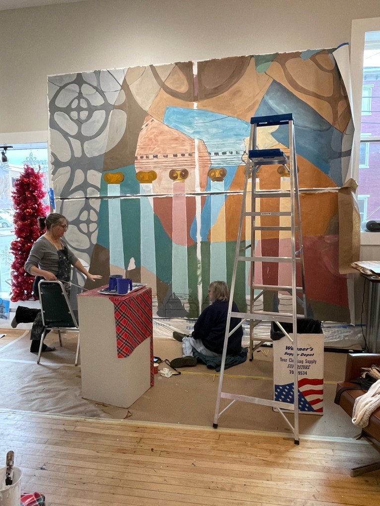 An interesting thing about murals is that they actually take up more space when they are disassembled. While the murals were in progress, the council maintained its active exhibition and class schedule. The first mural was officially started in May of 2022. “They painted pretty hard for May, June and July,” says Finch. [The Chambersburg previously checked in on the project in June.] Then they took a break for new gallery shows. “And everybody kind of needed a mental break.”